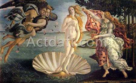 イタリアルネッサンスの最高傑作。ヴィーナスの左側には誕生を祝福する西風の神セウロスと妻である花の女神フローラ、右側には時の神ホーラが描かれています。